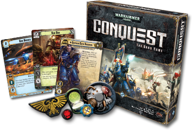 The Warhammer 40,000: Conquest Living Card Game by Fantasy Flight Games was released at Gencon in 2014. Since its release the game has seen its card pool grow continuously and the community has developed along with it. While this is exciting, it means that the game may be more daunting and expensive to enter. This buying guide will introduce prospective players to the Living Card Game model, explain what comes in different products, and give suggestions about what products will give players a good selection to get started with.