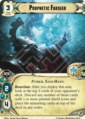 Now you might be thinking, okay, I not including Archon’s Terror. That’s more expensive now so it isn’t really as powerful as it is in other Dark Eldar decks. Not that 3 cost out of the question, since you’re also triggering a Hypex. And maybe you’re right. Feel free to swap it for Suffering or even the Promotion if you’re finding you just don’t need them. The real sin is no Klaivex Warleader? Madness! I would tend to agree if it wasn’t for that dang 4 cost. In a pitched battle, if I am planning on using several events, even at their reduced cost I find putting 4 resources into clearing a single unit quite expensive where another 3 damage from a Mandrake might do. That’s just my opinion though, so perhaps you’d rather swap a couple in instead of having the Prophetic Farseer. If so, I say give it a shot and drop me a line so I know how it played for you! And that’s about it, let me know what you think of this deck, and what you would like to see to make Urien “da bomb”. Cheers.