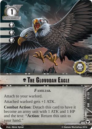 As you can imagine a Coteaz deck will require that a lot of units be sacrificed over the course of a game. The Emperor Protects means that units that are sacrificed can still factor in to the longer term. Beyond this use the card is only a single shield, making it harder to make use of often. Next up, the signature squad includes one of the most interesting signature attachments in the game. The Glovodan Eagle is a suprisingly versatile piece of gear. For the first couple of weeks after release one local Toronto player managed to repeatedly surprise just about everyone with some of the combos she achieved. Finally, we round things out with the signature support, Formosan Black Ship. A great utility for an even greater value, this support giving the signature squad the staying power needed to swing the tide of a battle. All told, Torquemada Coteaz and his signature squad are one of the most powerful in the game. Unfortunately the inquisitor is also one of the most difficult warlords in the game to use.