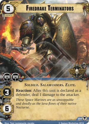 The Threat Beyond isn’t a particularly important War Pack for Space Marines but it did bring three very interesting new options to the table. Possibly the best option provided is the Firedrake Terminators. This Elite unit may be one of the best in the game, having good command and ATK, decent HP, and an excellent ability. As Elite units are given more support the Firedrakes’ stock will only grow, especially if swarm continues to be prominent in the meta. Marines also get two other decent cards, the Imperial Fists Siege Force and the Nocturne-Ultima Storm Bolter. Both of these cards have interesting abilities but may have limited use at this point. The storm bolter is too expensive for what it offers, though a 2-shield card that can be tutored via Earth Caste Technician is still useful. The siege force on the other hand is a good value but has limited scope. As the game sees more Ally cards released the siege force will improve in value and the Planetfall cycle seems like it will provide the opportunity. (Editor’s Note: There have already been 3 new Ally units introduced in the first 2 packs of Planetfall)